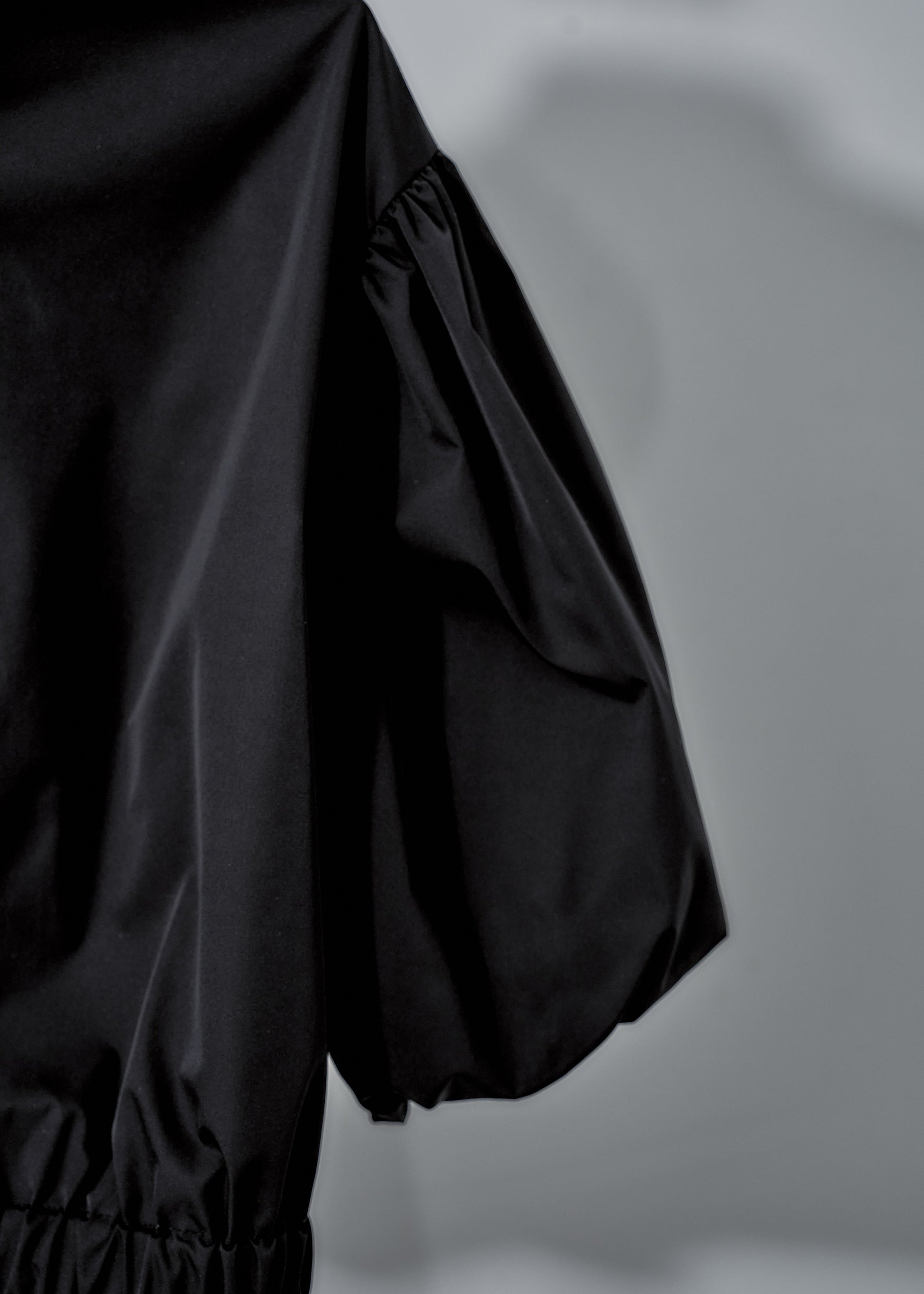 ミニマムな佇まいの中に静かな主張を添える、襟元のスタッズワーク。アクセサリーを削ぎ落としてもなお、着る人の顔立ちを凛と引き立てます。また、贅沢に生地を使用したボリュームスリーブは、計算されたギャザーによって、甘さに逃げないモダンなフォルムを描き出します。